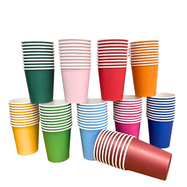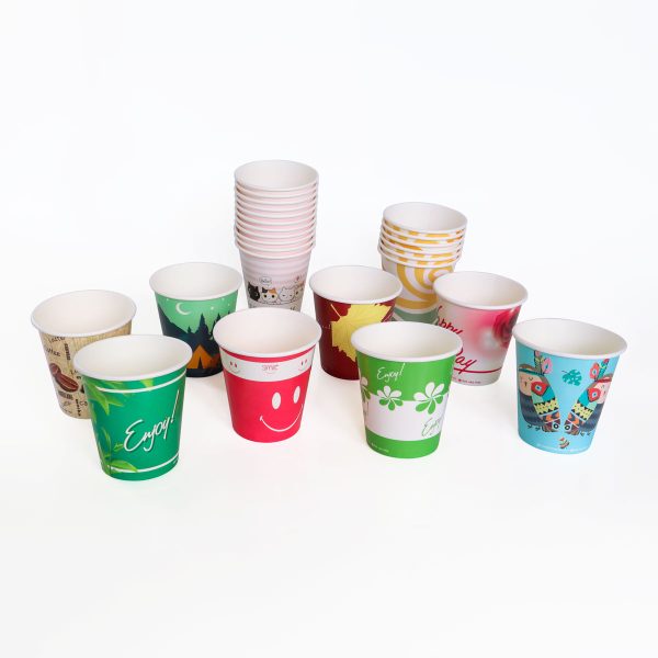 Ly giấy 6.5oz tráng PE, an toàn, đựng nóng lạnh, 1 lần, trắng/họa tiết, lốc 50 cái, sản xuất Việt Nam.