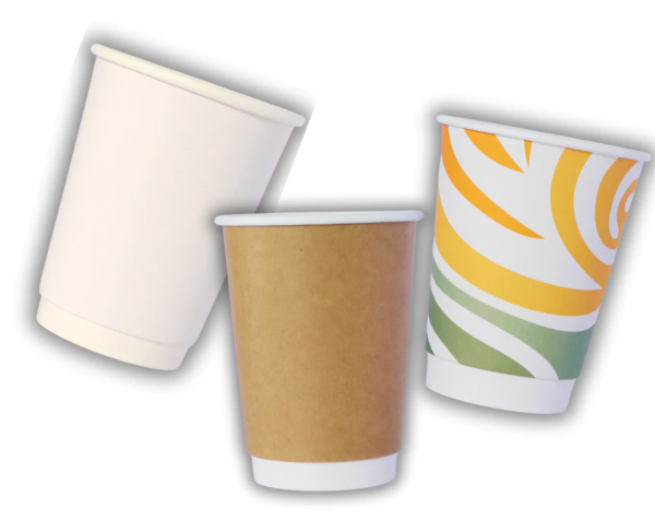 Ly giấy 2 lớp Double Wall, tráng PE, cách nhiệt, đựng nóng lạnh, 1 lần, 12/16oz, lốc 25 cái, sản xuất Việt Nam.